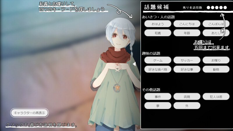お喋りしながら最終EDを目指していく、短編周回ゲームです。